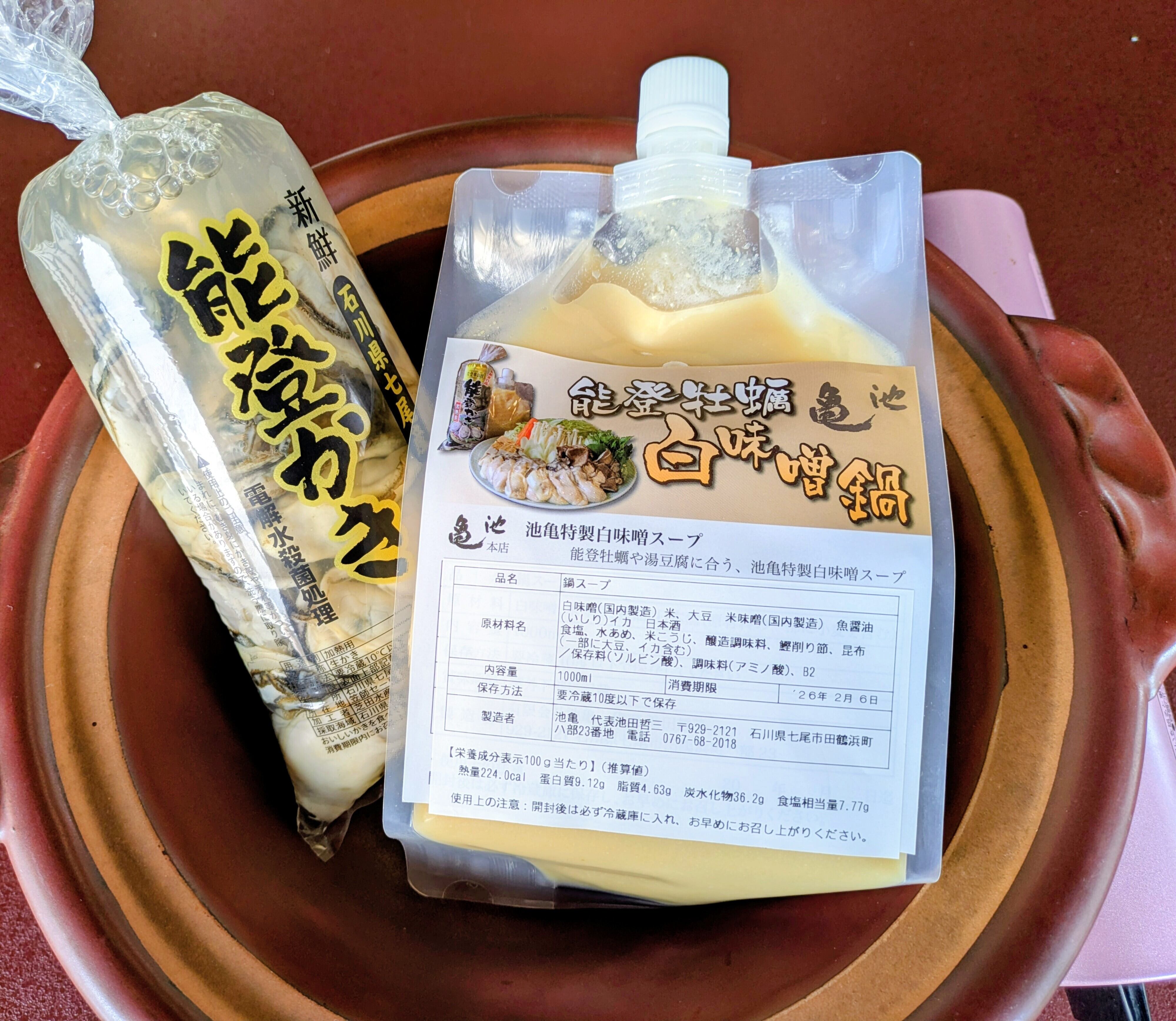 内容量(3-4人前):能登かき500g、池亀特製白味噌スープ800ml (※)